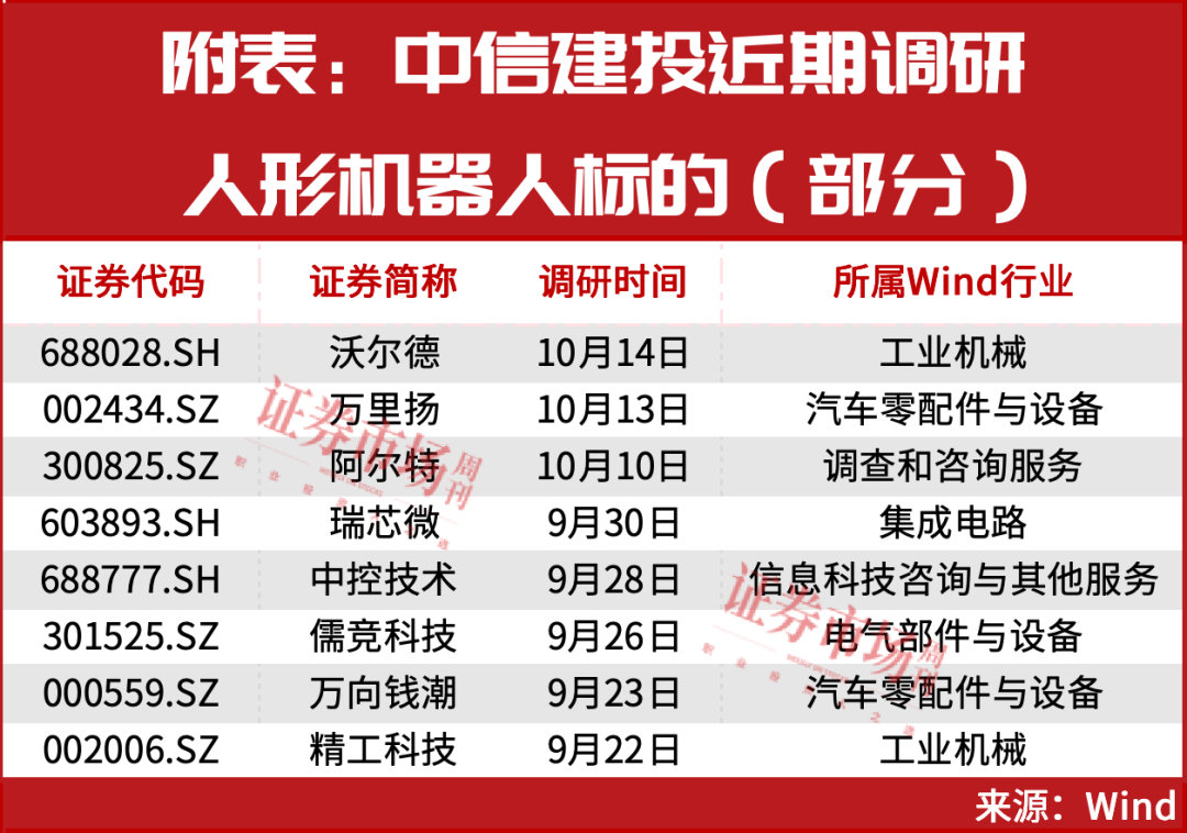 从永远来看,东说念主形机器东说念主仍是造成了重复产业利好驱动、技艺迭代、交易化加快落地、头部企业成本化运作等在内的多维度驱动逻辑。关于该干线接下来的契机,不少机构给出治服的不雅点,如中信建投最新默示,第四季度全面看多东说念主形机器东说念主板块行情。笔者戒备到,中信建投自9月以来参与调研了一生东说念主形机器东说念主见地股,如沃尔德、万里扬等(见附表)。